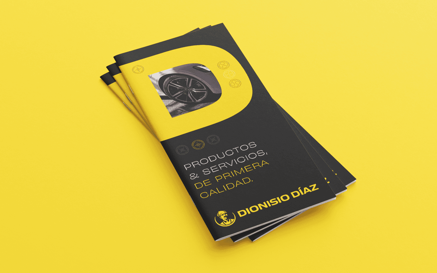 We developed a branding system centered around a modern logotype inspired by the automotive industry, accompanied by an iconic symbol that encapsulates the heritage of "Dionisio Diaz." To reinforce the identity, we chose a strong color palette made of yellow and black as the primary hues, complemented by various saturation gradients to add depth and flexibility. A custom icon set was designed to highlight the specific services offered by the company, ensuring consistency across all touchpoints. The result is a contemporary, recognizable brand that bridges its historic roots with a forward-looking vision.
