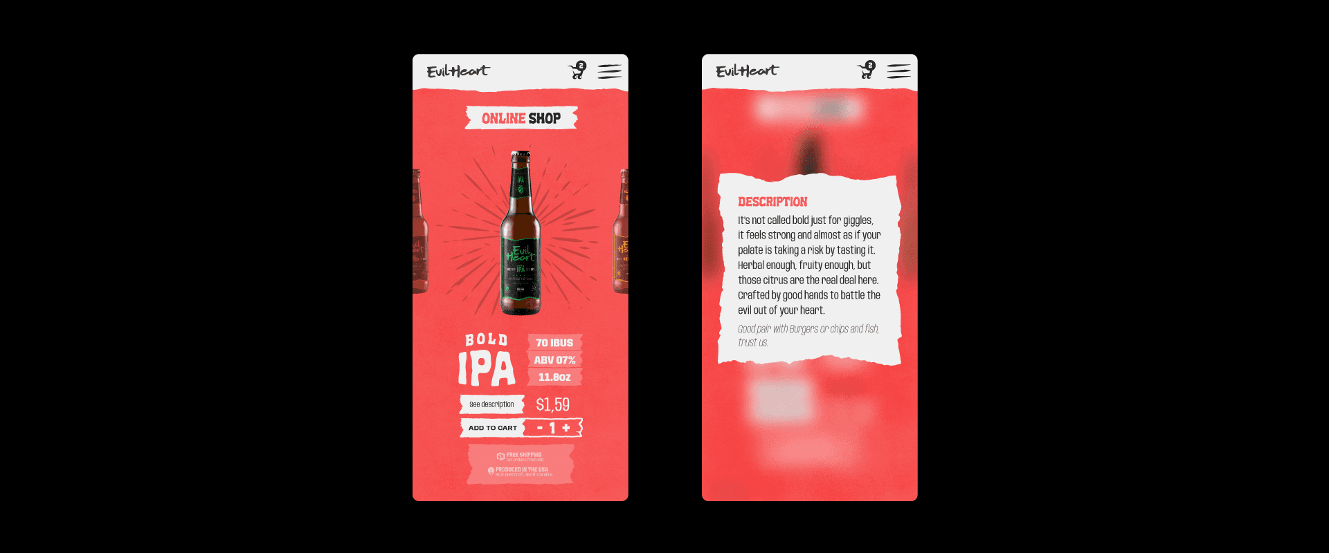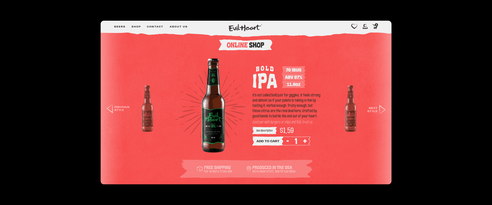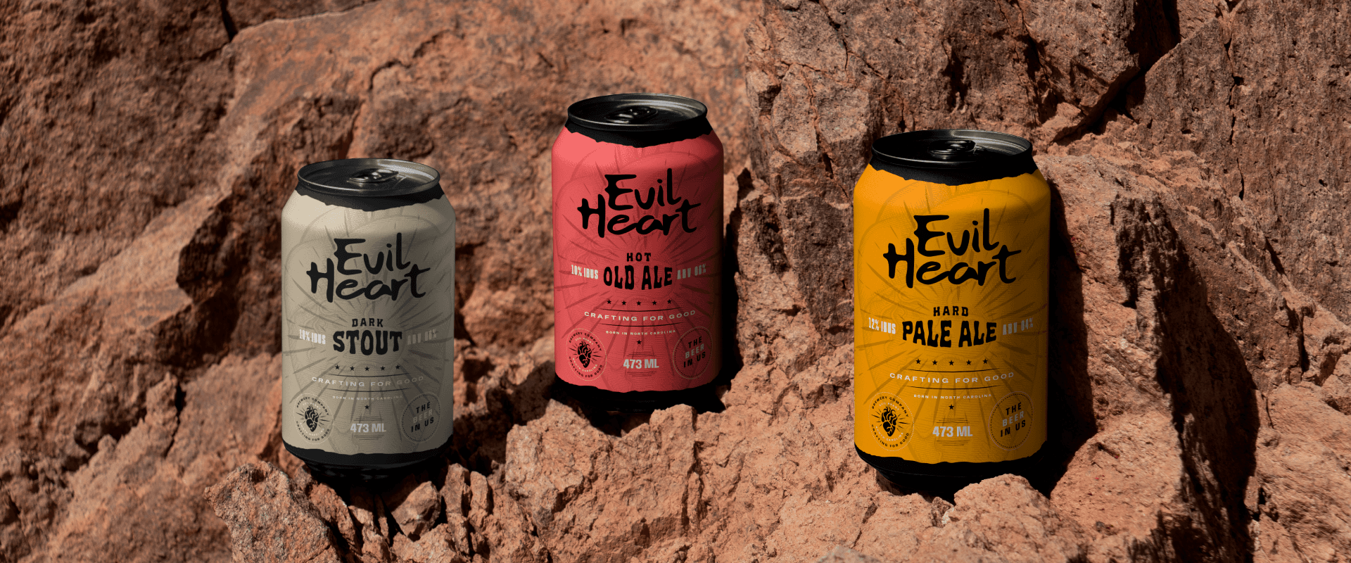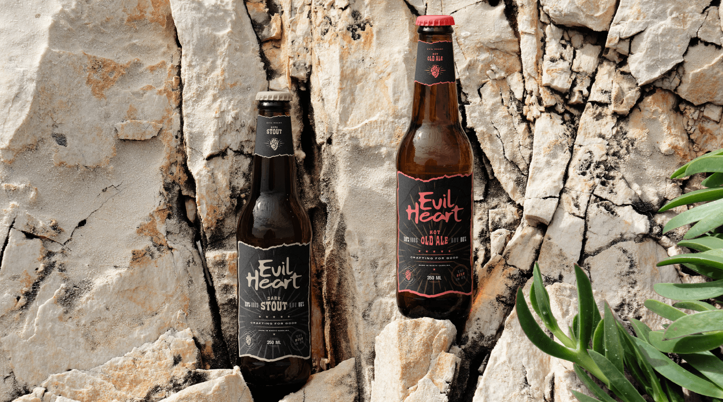 Evil Heart, a craft beer brand from North Carolina, sought a bold and unforgettable identity to match its name and its daring brews. The goal was to channel the essence of a "demonic heart" into a brand that exudes intensity, character, and quality. The challenge also involved designing labels for a wide range of beer varieties—IPA, Kölsch, Stout, Pale Ale, and Old Ale—and creating a dynamic e-commerce website that invites beer lovers to explore and indulge.