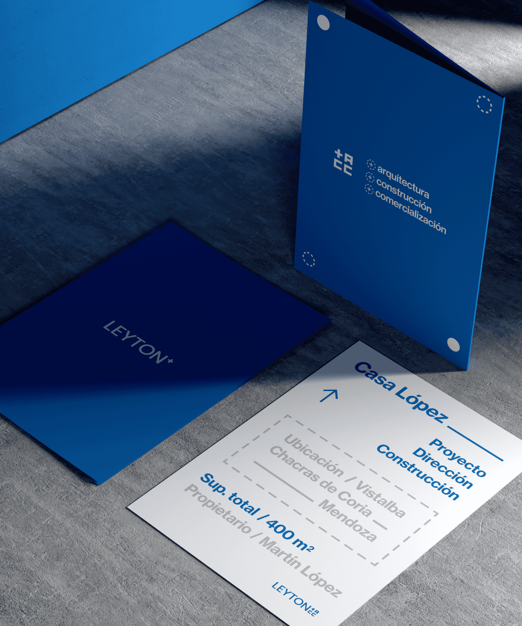 The rebranding of Leyton Inmobiliaria established a refined and modern visual identity that communicates both its legacy and its new ambitions. A sleek, minimalist logo with shades of blue reflects professionalism and trust, while the addition of a "+" symbolizes the expansion into architecture, construction, and commercialization.