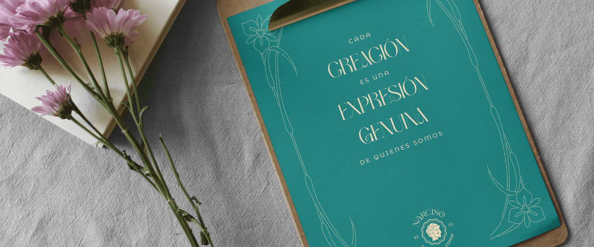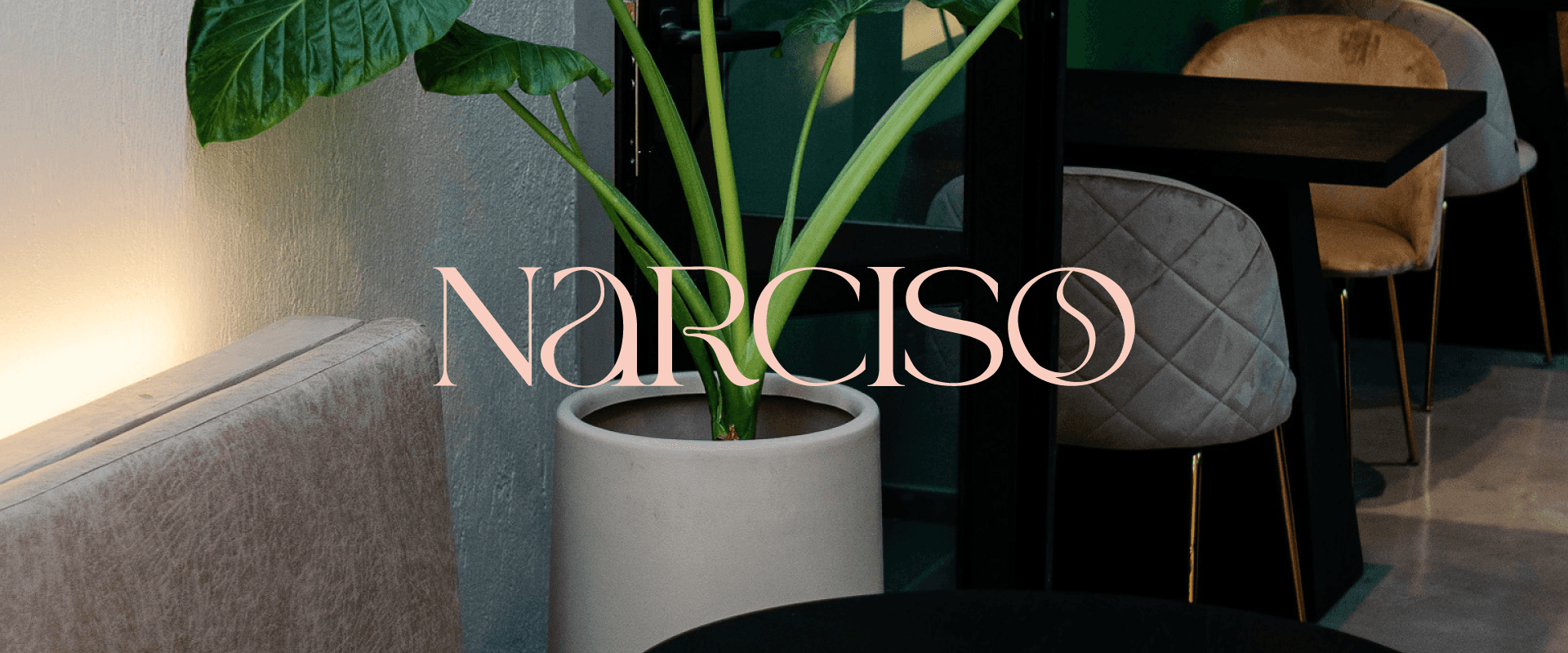 The branding successfully reflects the aesthetic and refined essence of the brand. A serif typeface logotype with subtle contrast and delicate details that enhance its elegance. Additionally, an isotype to directly reference "Narciso" and the rich story behind its name. This combination of elements captures the sophistication, charm, and blending of its culinary offerings with its artistic narrative.